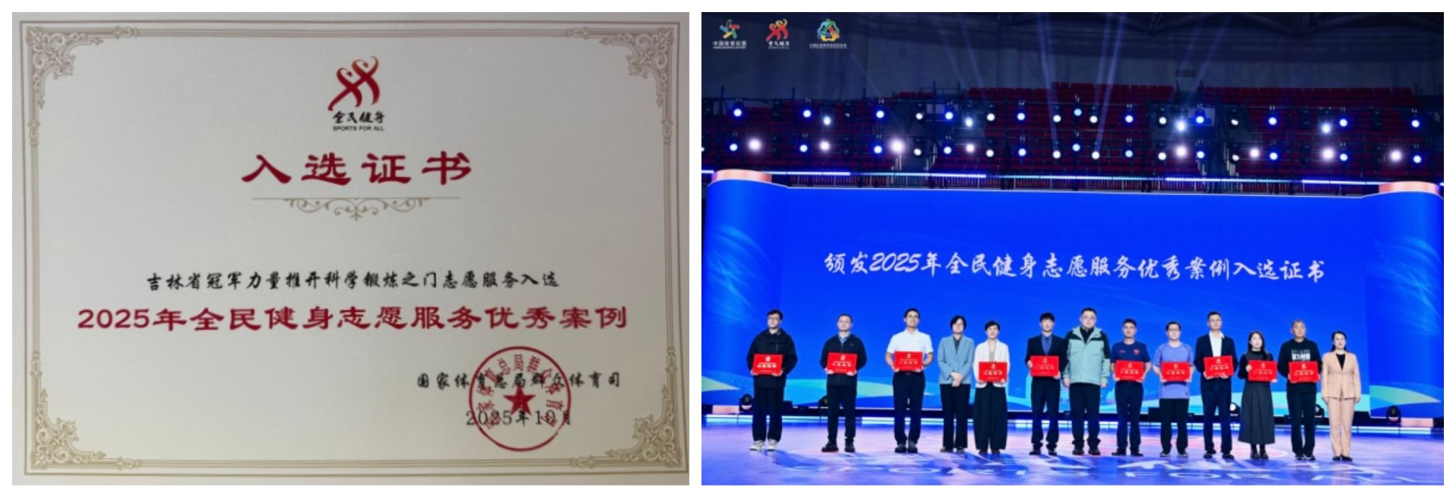 10月16日,国家体育总局公布了2025年全民健身志愿服务优秀案例,我校报送的《冠军力量——推开科学健身锻炼之门》获评全国优秀案例,是获得现场颁奖的十个单位之一。